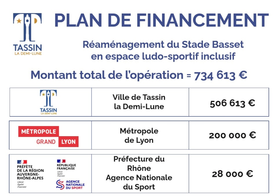 Le projet de réaménagement du Stade Basset en espace ludo-sportif inclusif est soutenu par la Métropole de Lyon, qui a contribué à hauteur de 200 000 €, ainsi que par l’Agence Nationale du Sport, à hauteur de 28 000 euros.